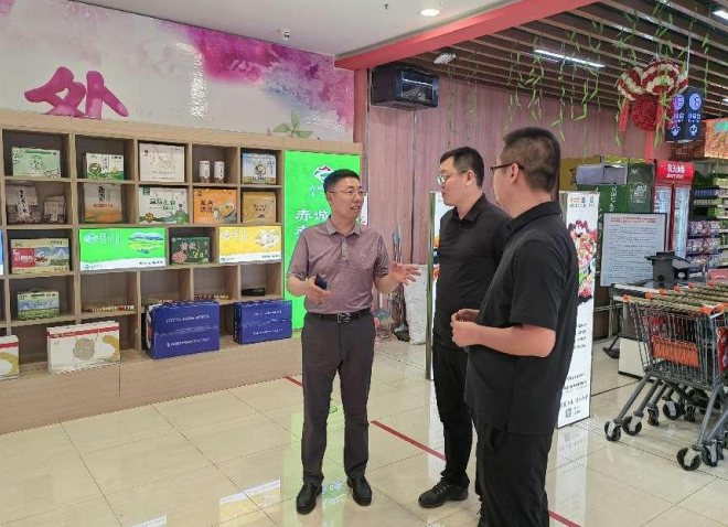 6月21日,赤峰市政府辦公室副主任青龍?jiān)?/span>中心城區(qū)調(diào)研“赤誠(chéng)峰味”商超展示工作開展情況,赤峰市城市建設(shè)投資(集團(tuán))有限公司“赤誠(chéng)峰味”品牌運(yùn)營(yíng)推進(jìn)專班成員陪同調(diào)研。