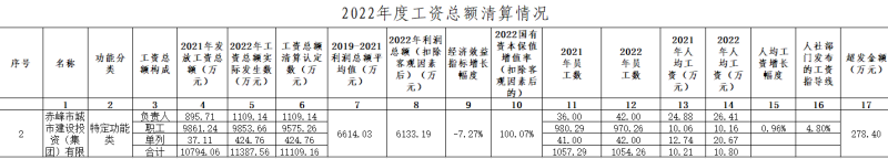 赤峰市城建集團(tuán)2022年度工資總額清算結(jié)果