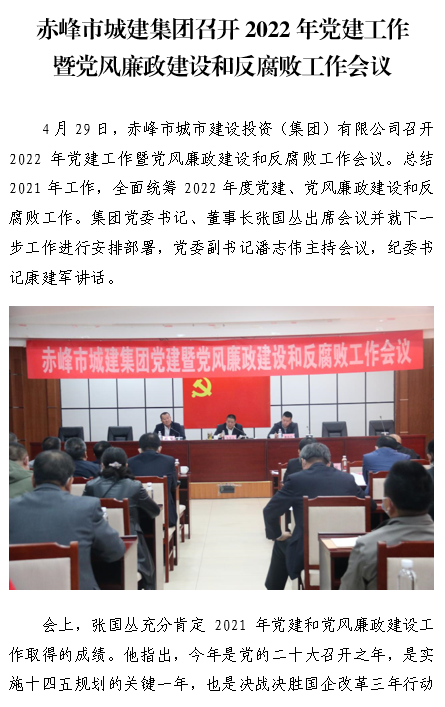 赤峰市城建集團召開2022年黨建工作 暨黨風廉政建設和反腐敗工作會議